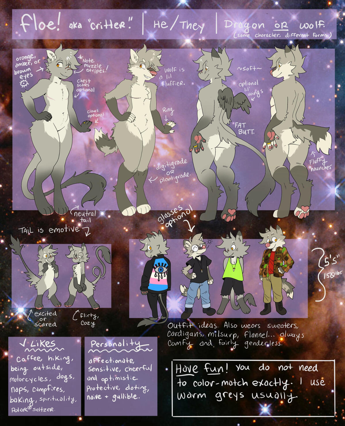 I am a nonbinary furry artist from New England. I am the Charity Liaison for Anthro New England and in addition to artwork, I work full-time in a people-focused career.I have been described as effervescent, gregarious, and a little awkward. I love meeting new people, traveling, and learning new things!There are a few labels and descriptors that mean a lot to my personhood, with helpful little links to educate. I love to talk about any and all of the below, so feel free to shoot me a message!
